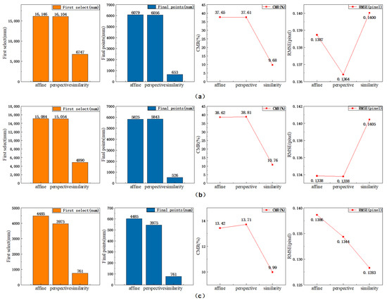 - The homologous point pairs were input into the ED-RANSAC operator combined with three transformation models (affine, perspective, similarity) for screening.