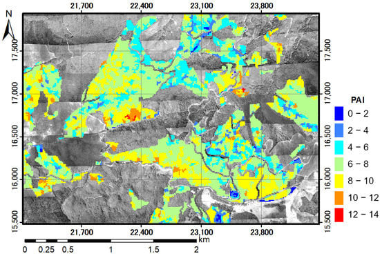 The young secondary forests have quite simple canopy structures compared to that of old growth. The simple structures would result in excellent PAI estimation. Therefore, validation of this method is a future research topic in old growth stands of deciduous broad-leaved forests with initially complex canopy structures. Thus, the applicability of the method should be examined in other forest ecosystems. Topographic effects on steep slopes should also be studied for accurate PAI mapping and for clarifying any limitations of this method.