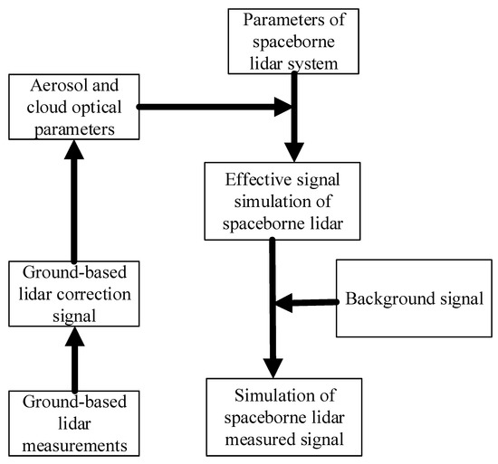 Simulation flow of spaceborne lidar signal based on ground-based lidar measurement data.