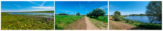 The park has a complex hydrological network. Its axis is the Warta River, which flows through the park’s territory in a straight, regulated channel, and just outside the park’s borders, it flows into the Oder River. The other important river in the park is the slow-flowing, meandering Postomia River. The Warta and the flood control dike running along its right bank divide the park into two distinctly different areas. North of the Warta is the higher-lying Polder Północny (North Polder), cut by numerous ditches and canals from which water is pumped into the Warta. The water level there is relatively stable. South of the Warta riverbed is a flat, extensive floodplain (Figure 2). This area can remain underwater for part of the year, and water level fluctuations here can reach up to 4 metres per year [30]. It should be noted that the flooding of the park’s area is caused by backwaters from the Oder River and waters carried by the Warta River from outside the park. Precipitation in the area is less than the national average and amounts to 500–550 mm per year, of which about half falls in May–August. The winter period is the poorest for precipitation, and the duration of snow cover does not exceed 25 days. Average annual air temperatures vary from 7 to 9 °C [30,31].