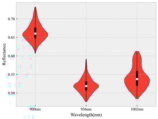 Statistical plot of the reflectance distribution at 900 nm, 936 nm, and 1002 nm.