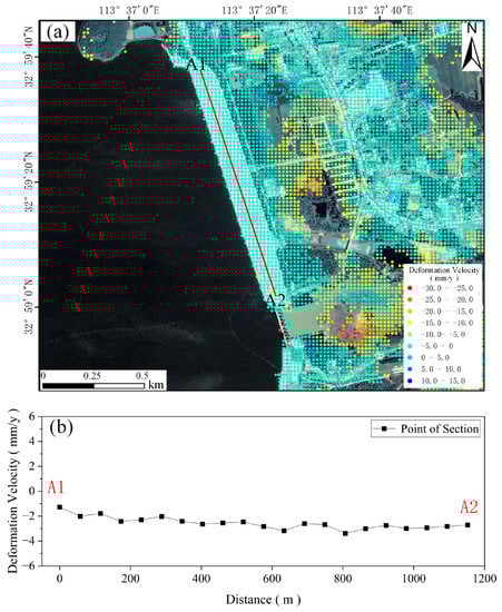 - Subsidence was observed in some areas, and the maximum subsidence velocity in those areas reached 30 mm/y. The subsidence areas are mostly situated within some cultivated land around the village, the Ru River, and other areas. The causes of surface subsidence are likely associated with factors, such as rainfall, local geological conditions, and human production and construction.