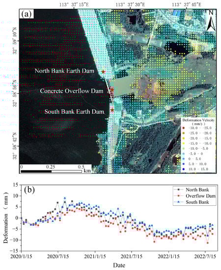 Pang, Z.; Jin, Q.; Fan, P.; Jiang, W.; Lv, J.; Zhang, P.; Cui, X.; Zhao, C.; Zhang, Z. Deformation Monitoring and Analysis of Reservoir Dams Based on SBAS-InSAR Technology—Banqiao Reservoir. Remote Sens. 2023, 15, 3062. https://doi.org/10.3390/rs15123062