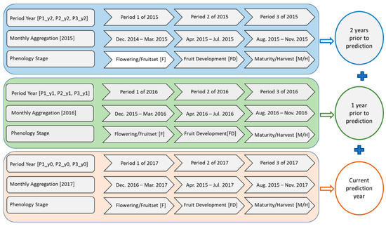 A schematic representation of period year aggregation in relation to phenology stages for the 2017 prediction year.