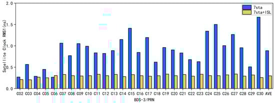 RMS1 for the 7 sta and 7 sta and ISL scheme BDS-3 time synchronization case.