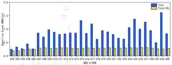RMS2 for the 7 sta and 7 sta and ISL scheme BDS-3 time synchronization case.