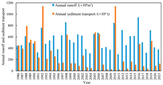 The annual runoff and sediment transport data of Zhuqi hydrological station can be found in http://www.mwr.gov.cn/sj/tjgb/zghlnsgb/ (accessed on 27 April 2023).
