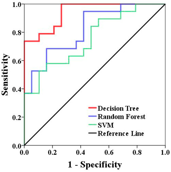 The “textbook” approach to creating confidence intervals is known as the asymptotic confidence interval (Asymptotic 95%). Despite the fact that it is valid for large sample sizes (thus the other moniker, “large-sample” confidence interval), there are no predetermined standards for how big is “large enough.” To put it another way, an exact confidence interval will result in the exact confidence level specified (for example, 95%); it is certain that if you repeated an experiment or poll repeatedly, you would obtain the same results 95% of the time [54]. The DT model demonstrated the greatest performance as compared to the SVM (AUC = 0.75), which demonstrated the lowest performance, with an AUC value of 0.94.