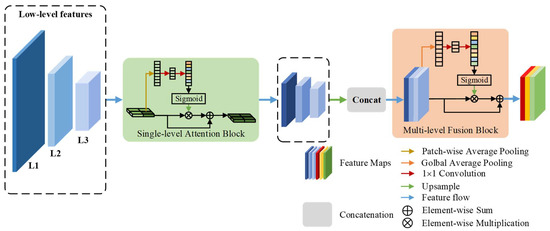- A successive attention fusion module (SAFM) is proposed to enhance multi-level features in local regions of the feature map, refining multiscale features parallelly and extracting correlations between hierarchical channels. As a result, the multiscale features are extracted and aggregated adaptively, providing a sufficient contextual representation of various water bodies.