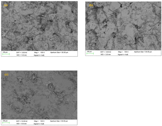 SEM fragment scanning results: (a) specimen D-1; (b) specimen N-1; (c) specimen S-1.