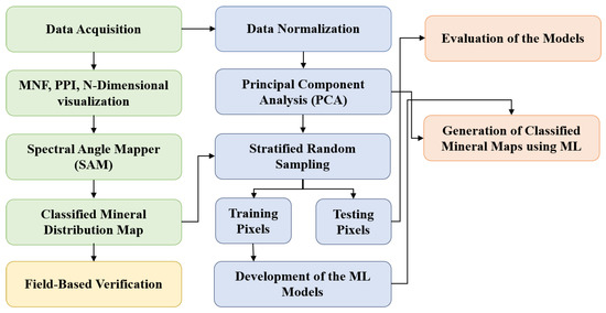 - Kumar, C.; Chatterjee, S.; Oommen, T.; Guha, A. Automated Lithological Mapping by Integrating Spectral Enhancement Techniques and Machine Learning Algorithms Using AVIRIS-NG Hyperspectral Data in Gold-Bearing Granite-Greenstone Rocks in Hutti, India. Int. J. Appl. Earth Obs. Geoinf. 2020, 86, 102006. [Google Scholar] [CrossRef]