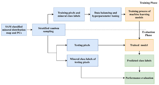 - Lobo, A.; Garcia, E.; Barroso, G.; Martí, D.; Fernandez-Turiel, J.-L.; Ibáñez-Insa, J. Machine Learning for Mineral Identification and Ore Estimation from Hyperspectral Imagery in Tin–Tungsten Deposits: Simulation under Indoor Conditions. Remote Sens. 2021, 13, 3258. [Google Scholar] [CrossRef]