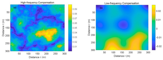 The high- and low-frequency phase-screen was generated by the Kolmogorov spectrum. (a) High-frequency compensation, (b) low-frequency compensation, and (c) synthetic phase-screen.