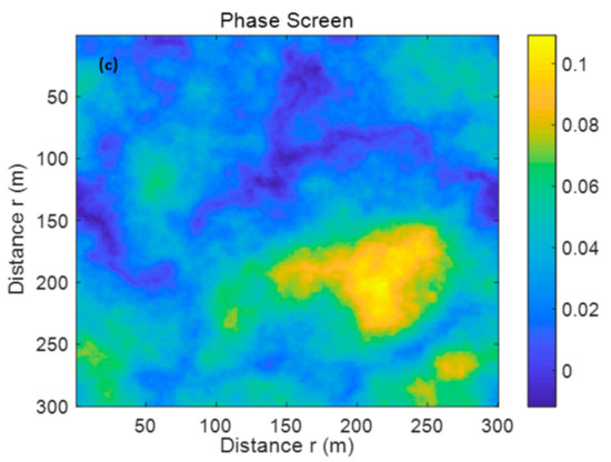 In order to simplify the transmission process of electromagnetic waves in turbulence, a common method is to simulate turbulence with a random phase-screen. At present, the main spectrums of a random phase-screen commonly used in theory and experiments are the Kolmogorov spectrum, Von Karman spectrum, Tatarskii spectrum, and Hill spectrum [28]. In this paper, the Kolmogorov spectrum was used for the numerical simulation, and the expression was as follows: