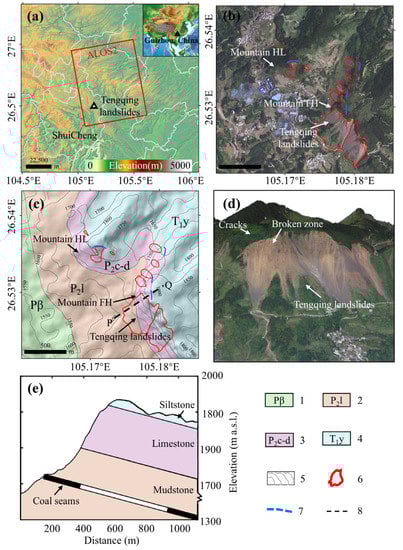 - Chen, L.; Zhao, C.; Li, B.; He, K.; Ren, C.; Liu, X.; Liu, D. Deformation Monitoring and Failure Mode Research of Mining-Induced Jianshanying Landslide in Karst Mountain Area, China with ALOS/PALSAR-2 Images. Landslides 2021, 18, 2739–2750. [Google Scholar] [CrossRef]