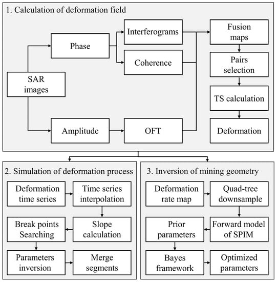 - Wang, L.; Deng, K.; Zheng, M. Research on Ground Deformation Monitoring Method in Mining Areas Using the Probability Integral Model Fusion D-InSAR, Sub-Band InSAR and Offset-Tracking. Int. J. Appl. Earth Obs. Geoinf. 2020, 85, 101981. [Google Scholar] [CrossRef]
