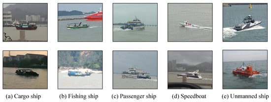 Samples of five types of ships in datasets. (a) Cargo ship. (b) Fishing ship. (c) Passenger ship. (d) Speedboat. (e) Unmanned ship.