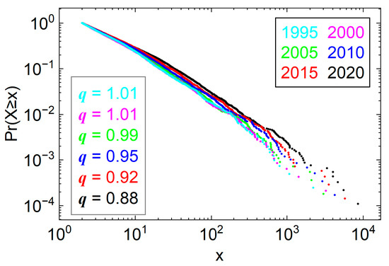 Zipf’s distribution of Chinese cities from 1995 to 2020.