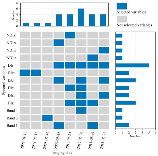 The variables selected by CARS on multi-temporal images in the 2008–2011 group.