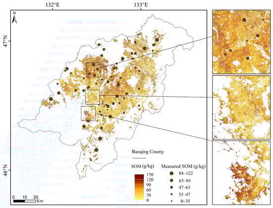 The SOM distribution in cultivated soils predicted by the model using the images in the 2008–2011 group.