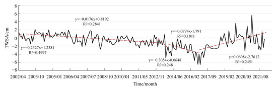 The data that support the findings of this study are available on request from the corresponding author. GRACE data can be obtained from the space research center at the International Center for GRACE RL06 Mascon (https://www2.csr.utexas.edu/grace) (accessed on 29 November 2022).