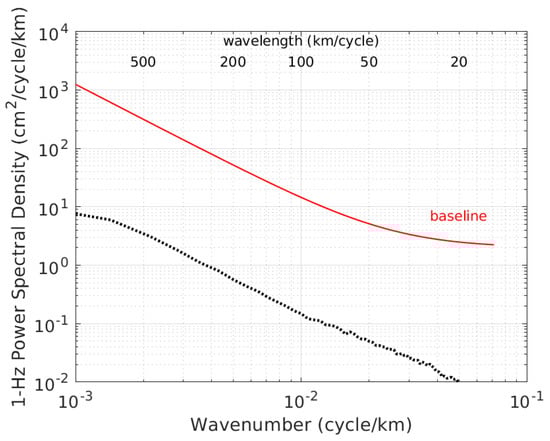 SWOT SSH error spectrum requirement (red curve) for the science baseline as a function of wavenumber along with the SST-related errors in SSH spectrum (black curve) evaluated from AltiKa.