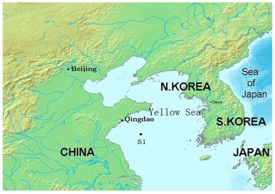 The study area was selected in the sea area roughly within the central South Yellow Sea shelf ~210 km to the southeast of Qingdao, China. The experimental data were acquired at station S1 (Figure 2), where the sediment type is clayey sand, the water depths are ~40–50 m, and the seafloor is relatively flat, deepening slightly in the NW–SE direction. Before measurement of the seafloor reflection data, the seafloor sediment samples were obtained at the survey station and the sound velocity profile of seawater as well.