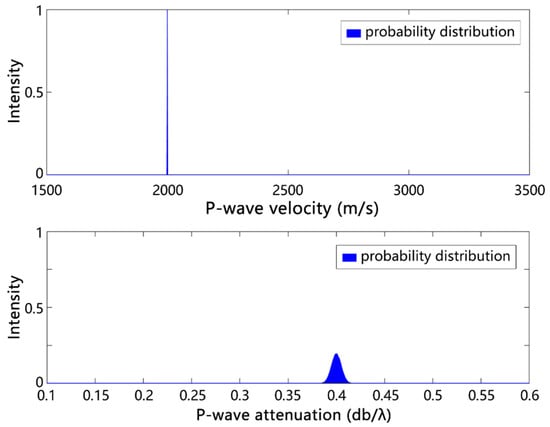 Schematics of the posteriori probability distributions of inverted acoustic P-wave velocity and sound attenuation.
