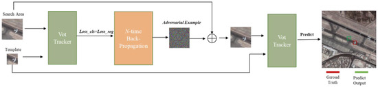 - For the RPN-based Siamese Network, we design the loss function based on pseudo-label classification and anchor box regression and adopt the strongest attack method in the first stage of PGD, using an iterative method to generate adversarial examples for RSI. Considering the timing of video frames, a momentum-based inter-frame adversarial examples addition method is designed.
