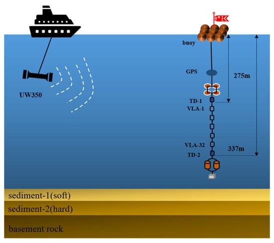 The data for single-spectral-line detection and reconstruction were received from an experiment conducted in the South China Sea in July 2021. A vertical line array (VLA) composed of 32 hydrophones with an interval of 2 m was employed at a depth of 275–337 m. The sampling rate of the acoustic collector was 10 kHz. During the experiment, the sound source transmitted a single-frequency signal of 71 Hz and was towed 1.5 to 11 km away from the receiving array at a depth of approximately 20 m. Figure 17 displays the hydrophone arrays used in our experiment. We intercepted 2k signal and noise samples from VLA-1 to VLA-32, which formed the measured sample set.