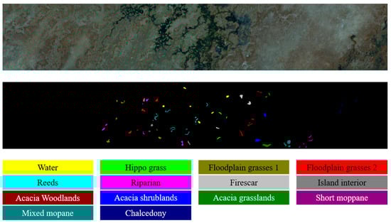 The false color image and ground truth map of the satellite hyperspectral dataset for Botswana.