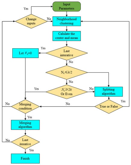 The ISODATA algorithm is a spatial clustering algorithm based on image segmentation and it is an unsupervised classification method. The ISODATA algorithm can use spatial information to identify and segment regions in images with highly similar target values and large differences between targets and achieve classification in a stepwise evolutionary manner. This study is used to classify land subsidence rates using three data layers simultaneously, such as SDFP, the corresponding pixel coordinates, and SABS InSAR-based ground subsidence values []. The ISODATA algorithm employs the following procedure []: