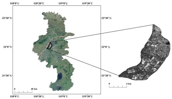 Position of the research region in the western region of the Qinhuai River, which is defined with black lines.