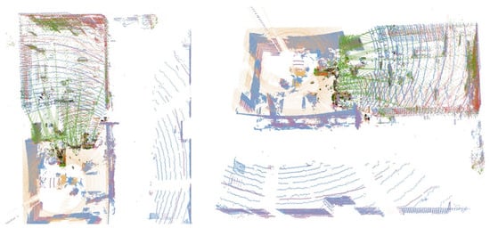 These platforms all run ROS Melodic on Ubuntu 18.04. The CPU and memory utilization was measured with a ROS resource monitor tool (https://github.com/alspitz/cpu_monitor, accessed on 27 June 2023). Additionally, for minimizing the difference in the operating environment, we unified the dependencies used in each SLAM system into the same version, and each hyperparameter in the SLAM system was configured with the default values. The results are shown in Table 4.