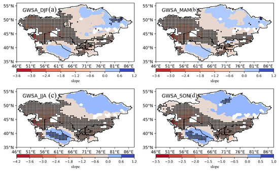 Spatial variation in the seasonal GWSA in central Asia.