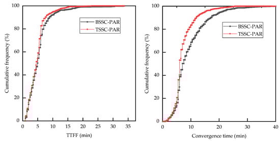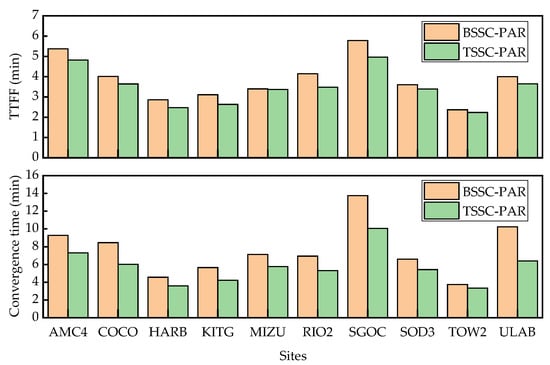 The average TTFF and average convergence time for the BSSC-PAR and TSSC-PAR.