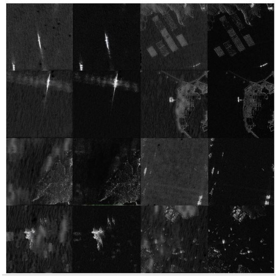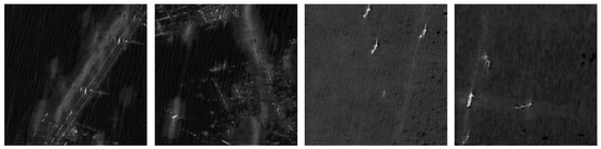 55] is a high-resolution SAR rotation ship detection dataset. All data in this dataset are from the GF-3 Spotlight (SL) mode with a 1 m resolution, with each image having 1024 × 1024 pixels. The data of inshore scenes occupy a proportion of 63.1%, with complex backgrounds and much interference, making detection more challenging. The dataset contains multiple categories: a total of six categories of 2884 ships that are all annotated by rotatable bounding boxes. It contains a total of 666 images, including 532 training images and 134 test images. Similarly, we introduce typical noise and interference into the testing samples to explore the efficiency of the proposed method when it comes to the domain adaption problem shown in