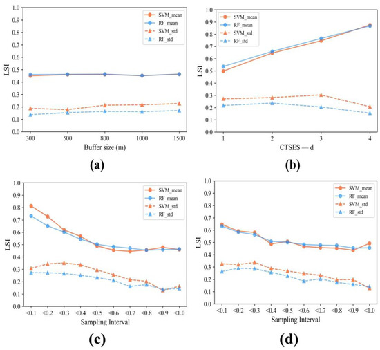 Each of the four absence sample sampling models has its own control parameters. Figure 12 and Figure 13 show the sensitivity of LSM to these parameters, and Figure 15, Figure 16, Figure 17, Figure 18 and Figure 19 show the sensitivity of the model evaluation metrics to the parameters.