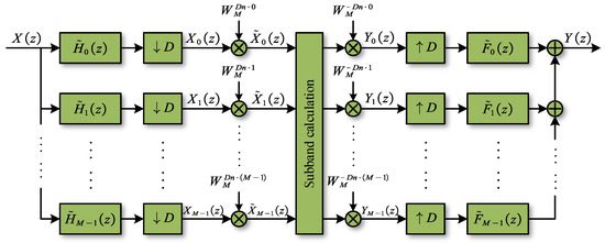 where indicates that the sequence is decimated by D times, and, according to the definition of discrete Fourier transform, the accumulation operation in Equation (7) can be realized by IDFT operation, so it can be obtained