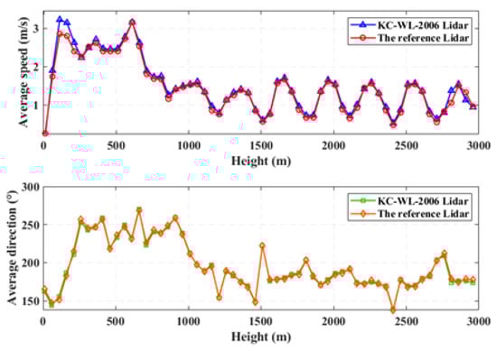 Average speed and direction measured by the KC-WL-2006 Lidar and the reference Lidar.