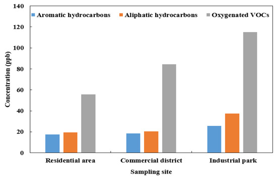Concentrations of the different groups of VOCs were collected at the three sampling sites.