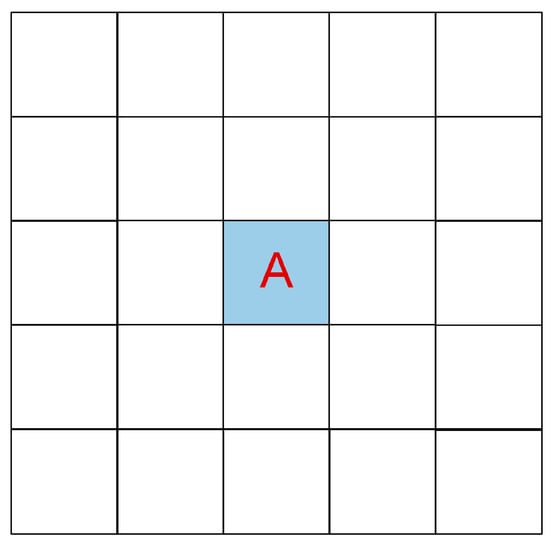 Schematic diagram of patch composition. Pixel A represents the central pixel, while the remaining pixels constitute its surrounding area. The patch size in the figure is 5.