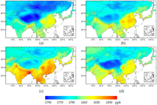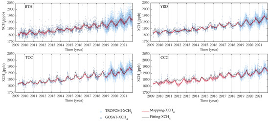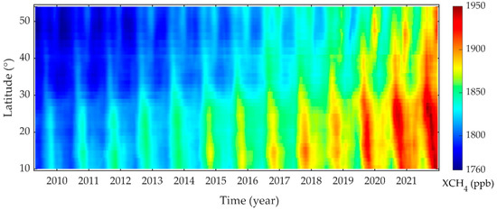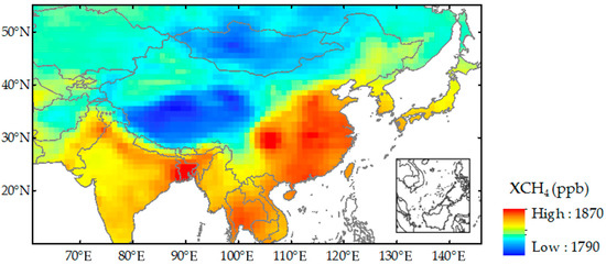 - Xu, J.; Li, W.; Xie, H.; Wang, Y.; Wang, L.; Hu, F. Long-Term Trends and Spatiotemporal Variations in Atmospheric XCH4 over China Utilizing Satellite Observations. Atmosphere 2022, 13, 525. [Google Scholar] [CrossRef]