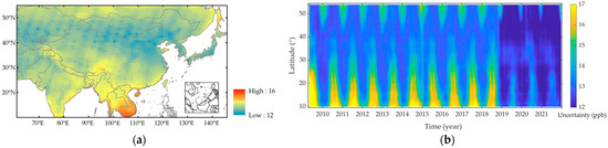 APA StyleSong, H., Sheng, M., Lei, L., Guo, K., Zhang, S., & Ji, Z. (2023). Spatial and Temporal Variations of Atmospheric CH4 in Monsoon Asia Detected by Satellite Observations of GOSAT and TROPOMI. Remote Sensing, 15(13), 3389. https://doi.org/10.3390/rs15133389