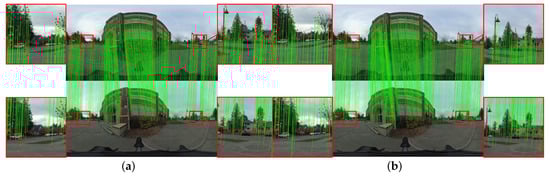 Figure 16b, the voting mechanism designed in this study solves this problem perfectly. The feature points of the remapped panoramic image are accurate, and no duplicate matching points are generated.