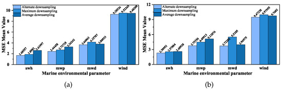 Figure 9 shows that alternate downsampling minimized the mean MSE value between the data obtained by the model and the original data. However, there were instances where average downsampling exhibited a lower mean MSE value. Therefore, in the following text, the results of using both downsampling methods are used as representatives of this model and are compared with traditional methods.