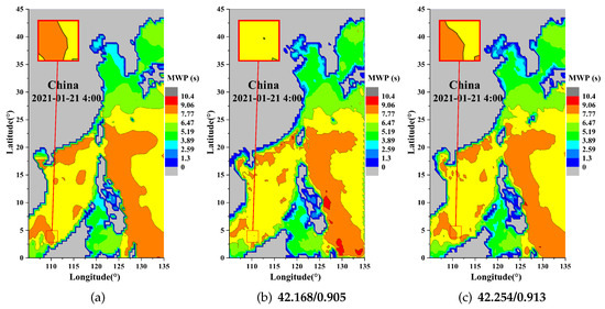 Due to U10 and V10 both having a spatial resolution of 0.25°, the spatial resolution of WS remains unchanged at 0.25°. Moreover, the spatial resolution of MWD, SWH and MWP is 0.5°. Some properties of these datasets are shown in Table 1. To account for the effects of time on certain marine environmental parameters, the training data consist of four parameters, each with 8186 data points, taken from all time points between January and April of 2016 to 2020. The test data still include these four parameters, each with 41 data points, taken from all time points between 21 and 23 January 2021. Before training, the training data are also expanded by 90° rotation, horizontal and vertical flipping, and enlargement.