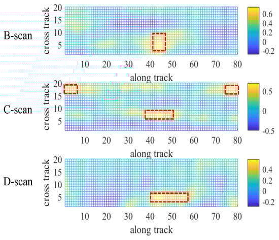 The window is panned across the along-track and cross-track directions to obtain multiple 3D masks, as shown in Figure 6. The last slice of the D-scan and corresponding B-scan of the 10th channel in each mask window is taken as the slicing group for network training and testing.