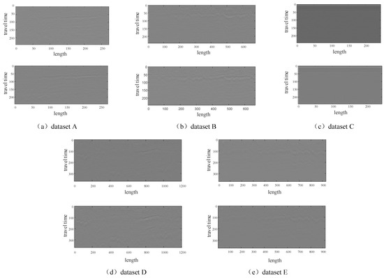 Dataset D comprises GPR data of the same asphalt pavement collected in different weather conditions (clear and rain days). The underground features in this area are consistent with dataset A. However, the subsurface water content changes with the weather, and there are different degrees of variation and blurring in the images on clear and rain days.