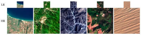 In our experiments, we built a training set using 19,980 remote sensing images from the NaSC-TG2 dataset. Each HR image was down-sampled by a factor of four to obtain a low-resolution LR image. The HR images have a size of 128 × 128 pixels, and correspondingly, the LR images have a size of 32 × 32 pixels. Training with smaller-sized images allows the model to focus on rich local textures, structural features, and object information in remote sensing images. This approach helps capture important details and patterns necessary for accurate super-resolution reconstruction. Additionally, using smaller-sized images reduces computational complexity and memory consumption.